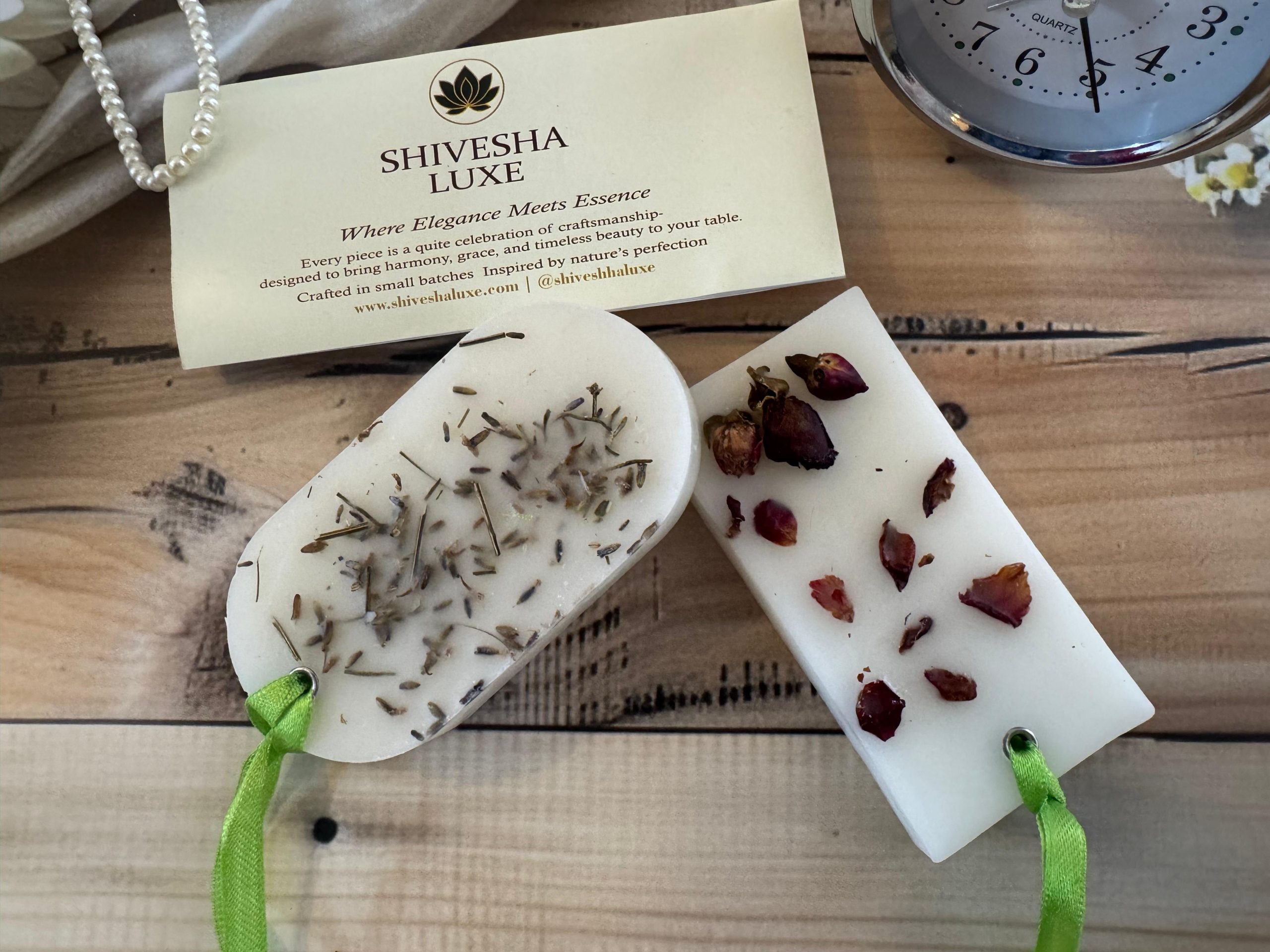 Decorated with dried botanicals and sculpted floral detailing, these sachets are as beautiful as they are fragrant. Perfect for wardrobes, linen cabinets, dressing tables, vanity areas, bathrooms, office drawers, luggage, gifting hampers, and car interiors — they gently perfume the air without flame, spray, or effort. Each piece offers a long-lasting, elegant aroma that transforms everyday corners into luxurious, mood-enhancing spaces.”