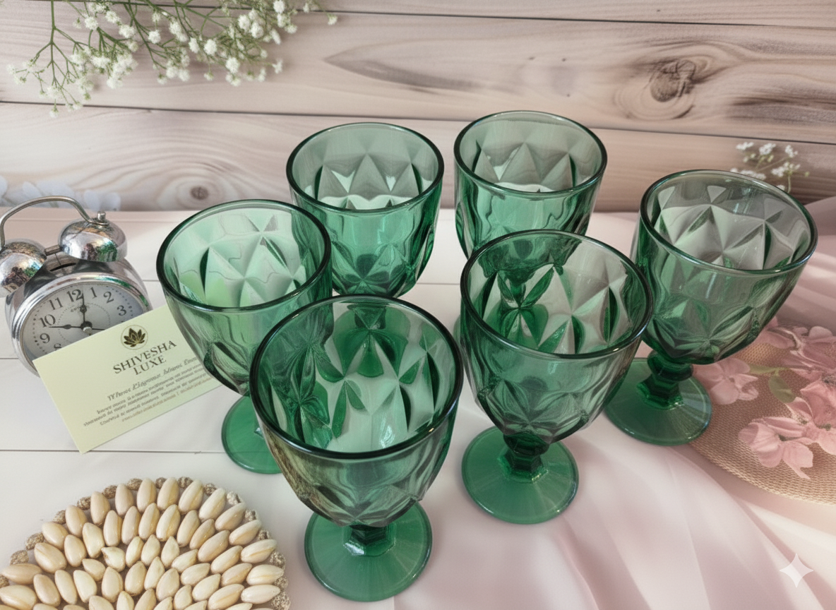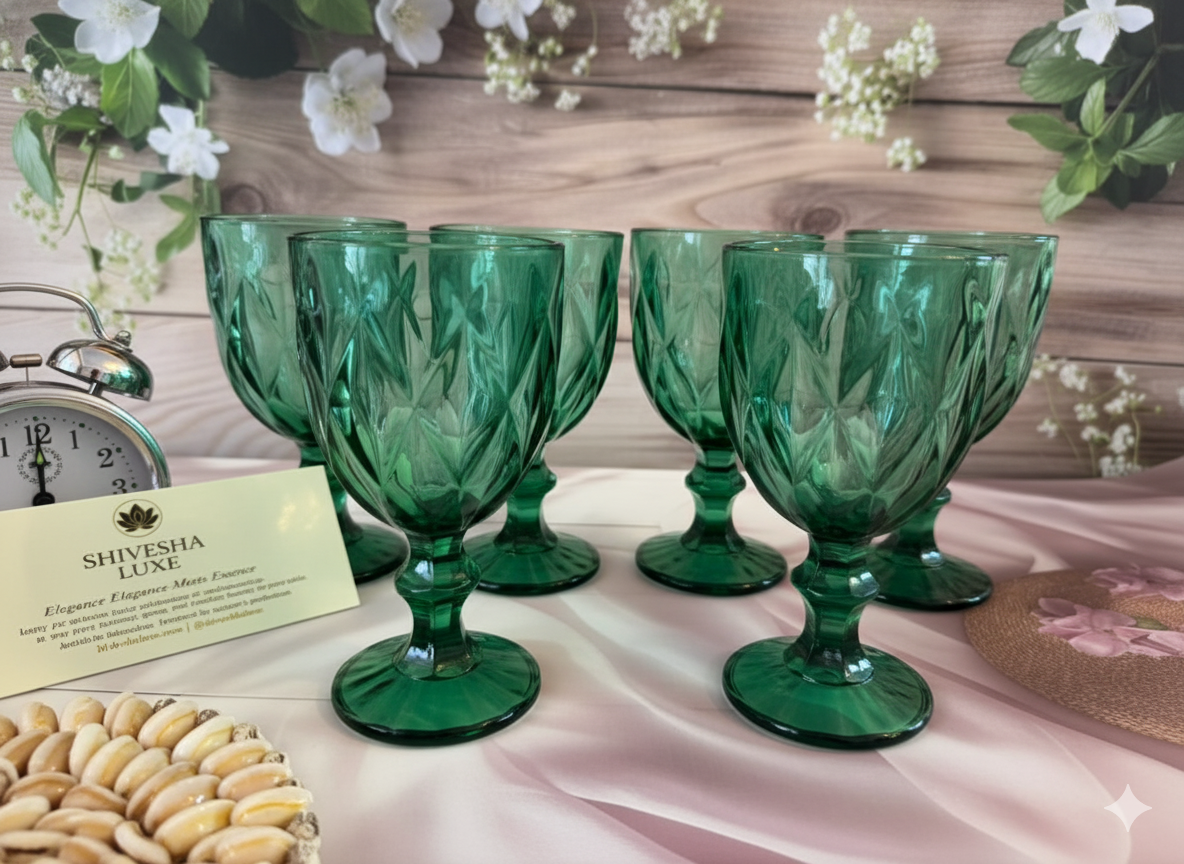 Crafted from premium, chip-resistant glass, these glasses combine durability with luxury. Perfect for serving wine, sherbet, sparkling drinks, mocktails, or even festive beverages — each sip feels more indulgent in this elegant emerald hue.